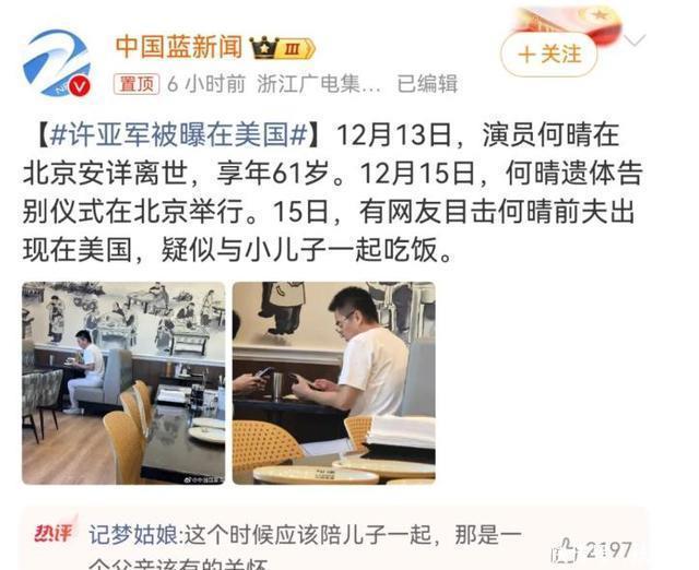 在阅读此文之前,麻烦您点击一下“关注”,既方便您进行讨论和分享,又能给您带来不一样的参与感,感谢您的支持。 编辑|2号探秘人 前言 何晴葬礼结束不到48小时,给许亚军养了多年“妻子”的他不忍了! 3字回应两人关系,没给何晴留一丝体面!